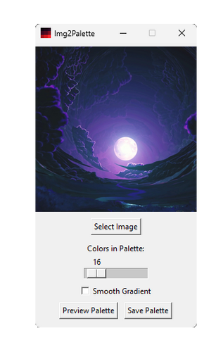- Palettes are outputted as a PNG file (3x3px swatch size)